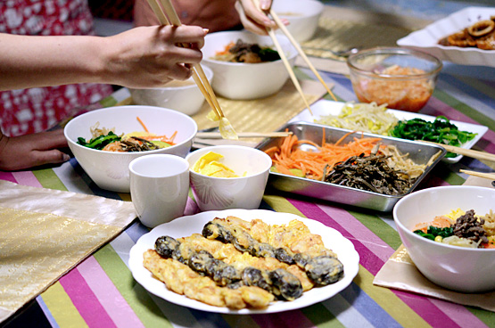 キム先生自らが指導してくれる!本格韓国料理が作れる料理教室です。流れは、レシピ説明から始まり、料理作り→試食→デザート&お茶→後片付け→終了と約3時間です。